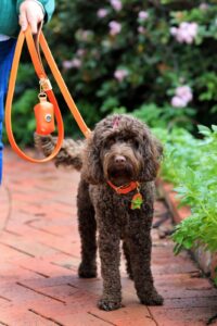 To find the best size collar for your furry friend we recommend measuring your pup’s neck circumference and comparing it to our size chart. And for your dog leash, we recommend you select the small dog leash if your dog fits our XS or S collar and our large dog leash if your dog fits the M or L collar.