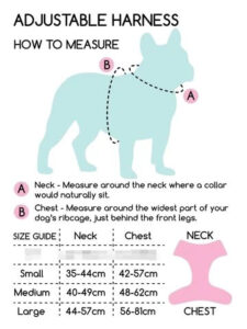 We also strongly recommend measuring the widest part of your pup’s head, too. As for your pup to put on the harness, it needs to go over their head therefore please also take this into consideration when choosing the best size harness for your furry best friend.