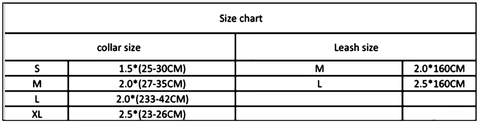 High Quality Dog Leash Collar Bundle Sizing Chart